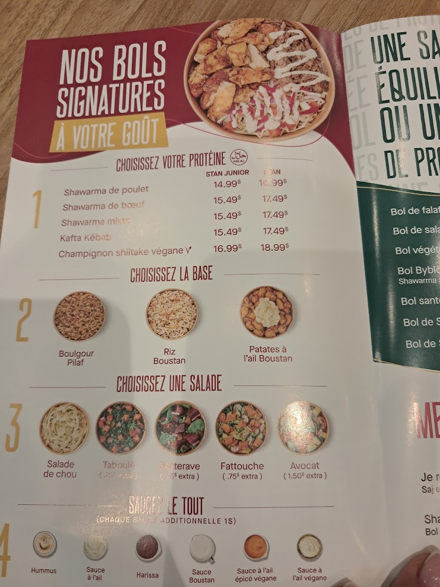 Introducing the menu at Restaurant Boustan - Carignan, a delightful haven for Middle Eastern cuisine located at 2355 Ch. de Chambly. Here, patrons are treated to an array of flavorful dishes that reflect both tradition and freshness.